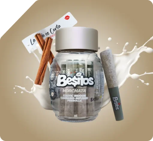 “Indulge in the creamy, spiced sweetness of Besos Horchata Infused Pre Rolls—crafted with premium flower, cinnamon-vanilla terpenes, and THC infusion for a luxurious smoke.